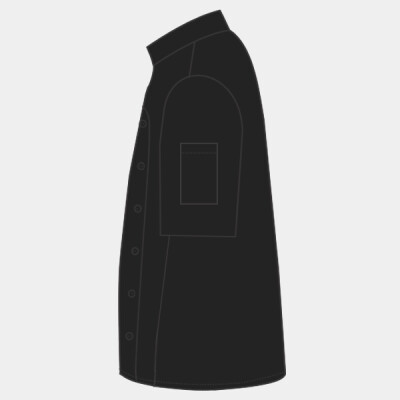 65% polyester/35% cotton twill. Mandarin collar stand. 5 button wrap over closure. High quality, long life resin buttons. Left sleeve double pen pocket. Industrial laundry 85°C. Domestic wash 60°C.
