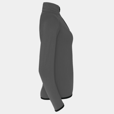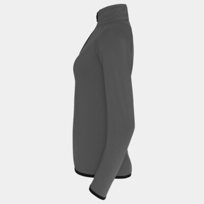 AWDis' own CoolFit blended fabric containing elastane that provides stretch for comfort and a great fit, girlie fit, reflective tab at back of neck helps keep ear phone cords in place, self-fabric contrast colour binding at zip, cuffs and hem, raglan sleeve design creates ease of movement, 1/2 zip with stand-up collar for warmth, chin guard prevents irritation, simple tear off label makes it perfect for rebranding, UPF 30+ UV protection.